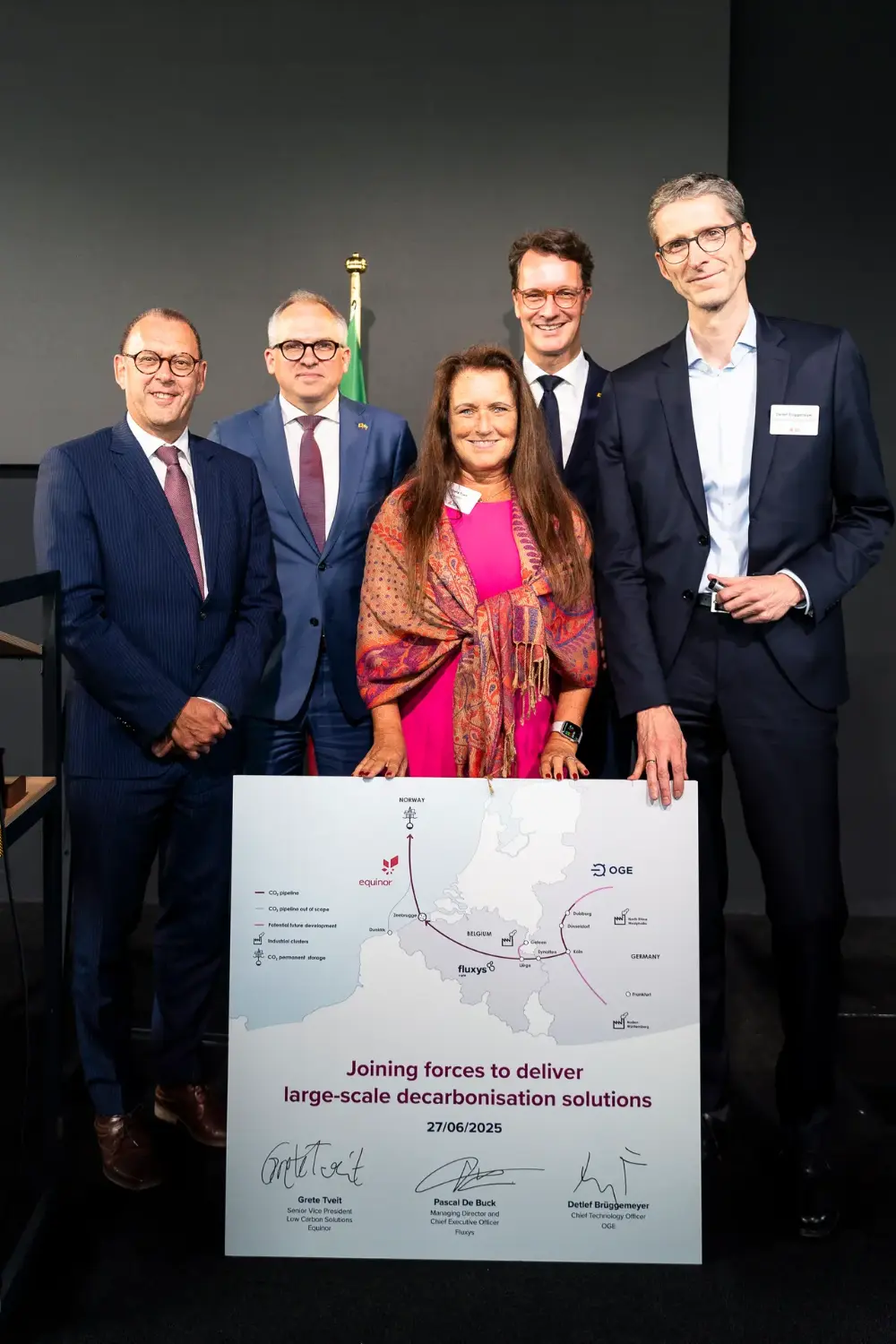 In September 2025, Equinor, Fluxys and OGE signed a Memorandum of Understanding (MoU). This MoU marks a significant step toward establishing a cross-border CO₂ transport infrastructure, connecting German industrial emitters to permanent storage sites under the Norwegian North Sea via Belgium.